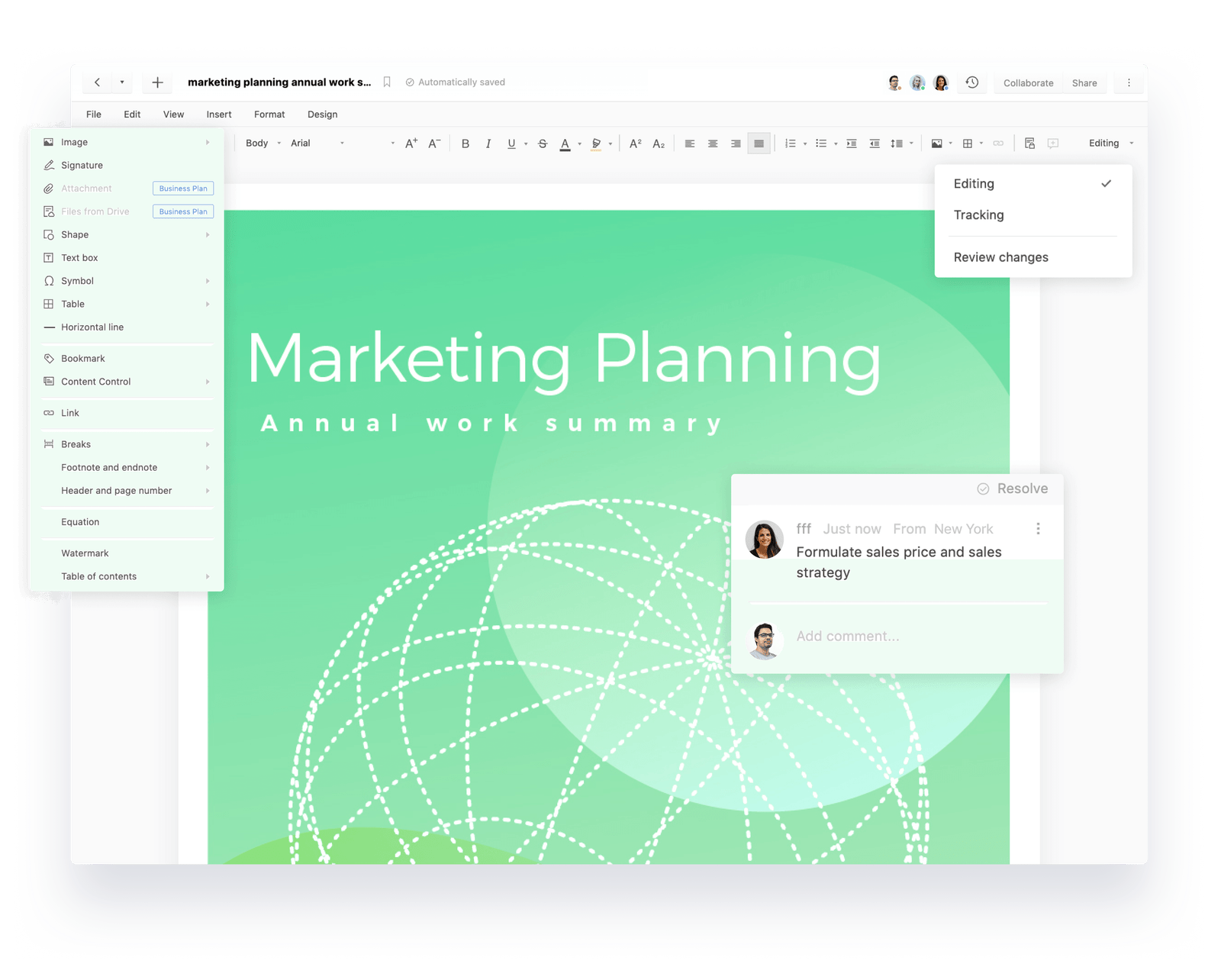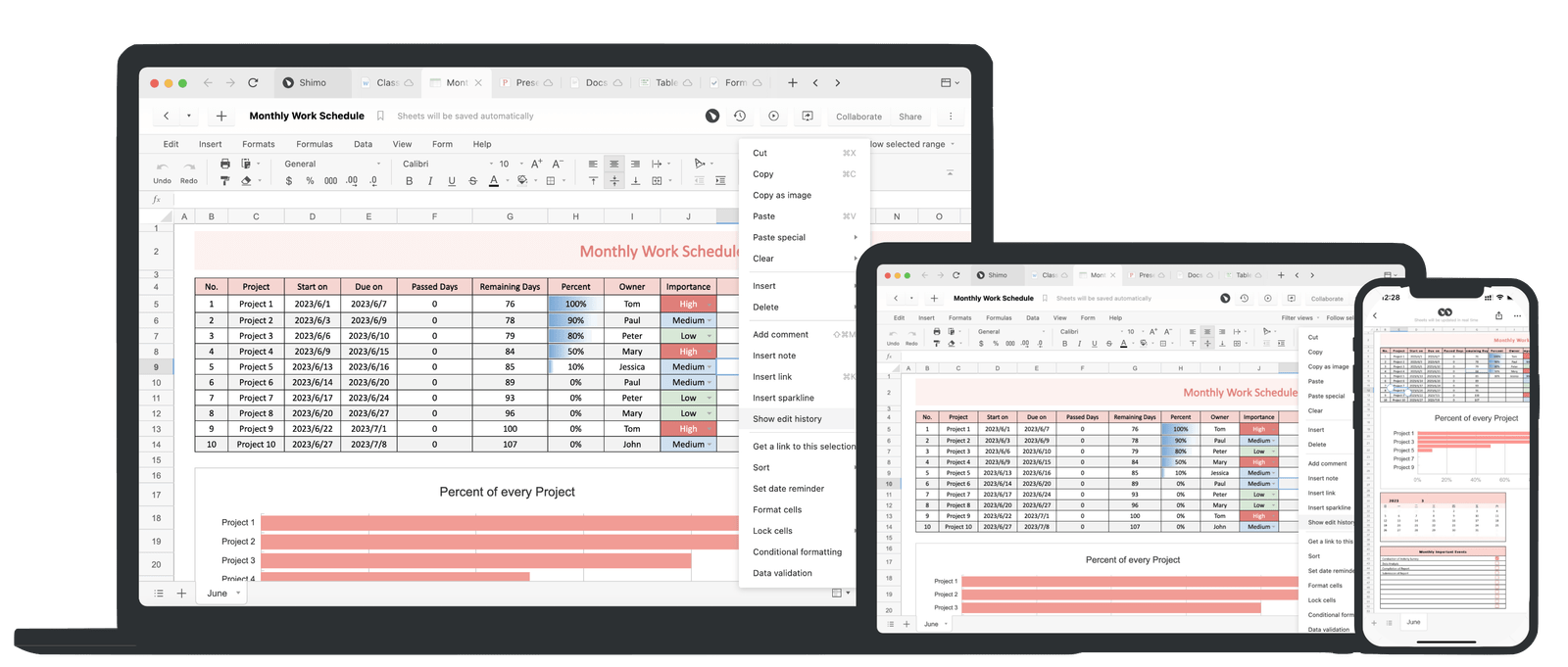 حتى مع قيام عدة أشخاص بالتحرير عبر الإنترنت في نفس الوقت، يحافظ Shimo Office على المزامنة والتخزين على مستوى ميلي ثانية، مما يسمح لفريقك بالتواصل والتعاون دون حواجز، في أي وقت وفي أي مكان، مما يزيد من كفاءة العمل.