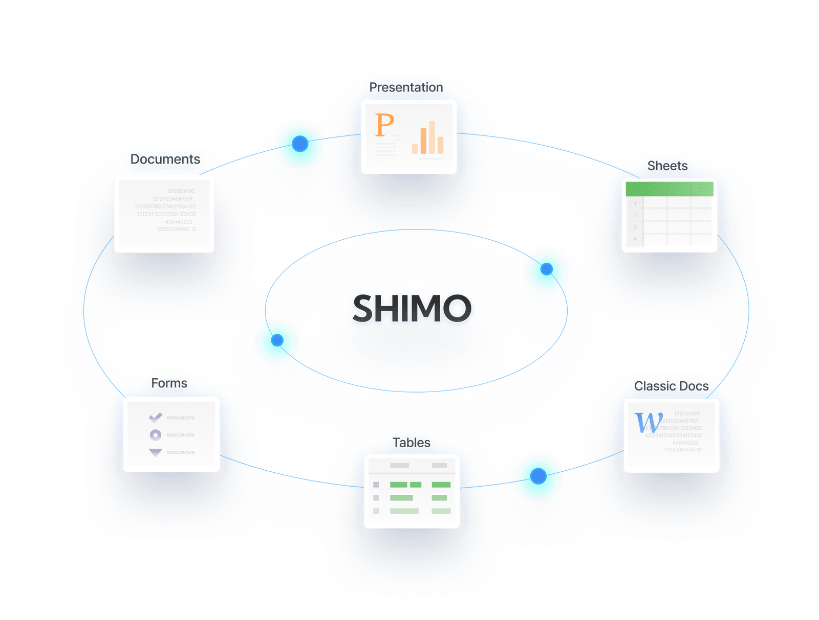 يدعم Shimo Office تنسيقات ملفات شائعة مختلفة بواجهة سهلة الاستخدام. انقل فريقك بسلاسة من MS Office أو Google Workspace أو التطبيقات الأخرى إلى Shimo Office للحصول على تجربة جديدة.